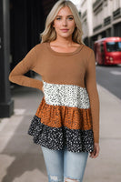 Color Block Round Neck Long Sleeve Blouse