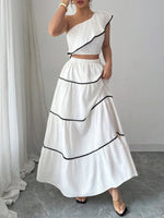 One-Shoulder Ruffle Top and Skirt Two-Piece Set