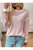 Ribbed Contrast Trim Long Sleeve Top