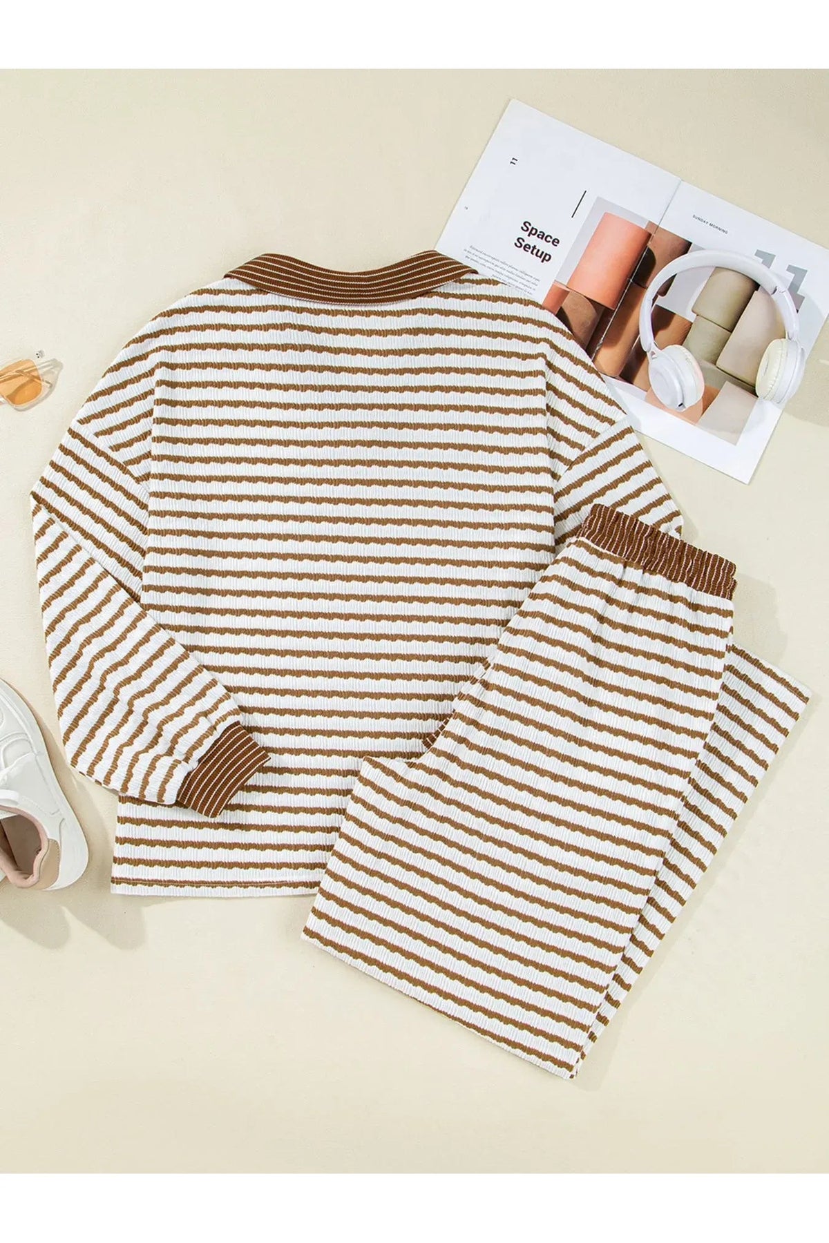Stripe Collared Top and Drawstring Pant Set